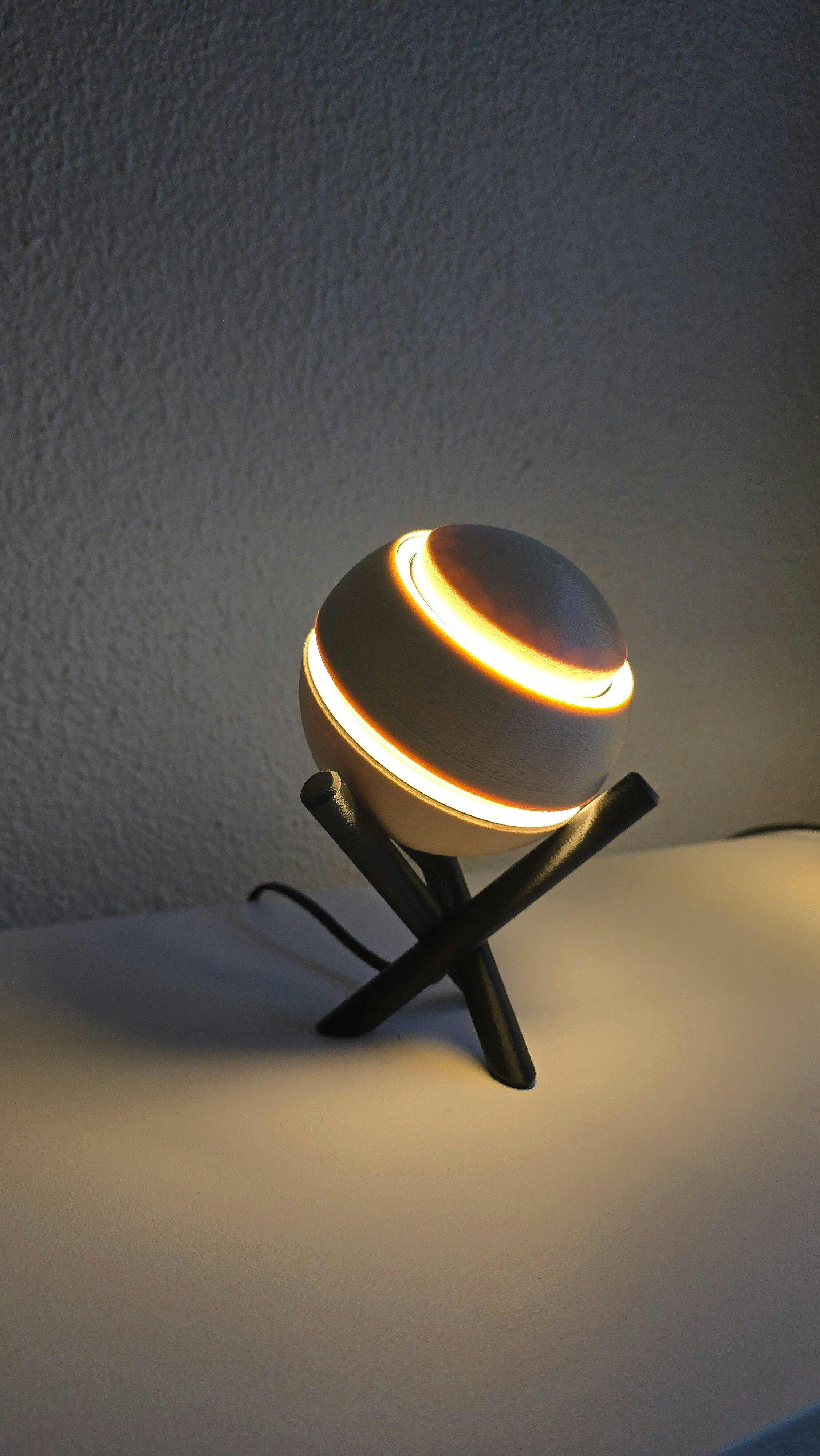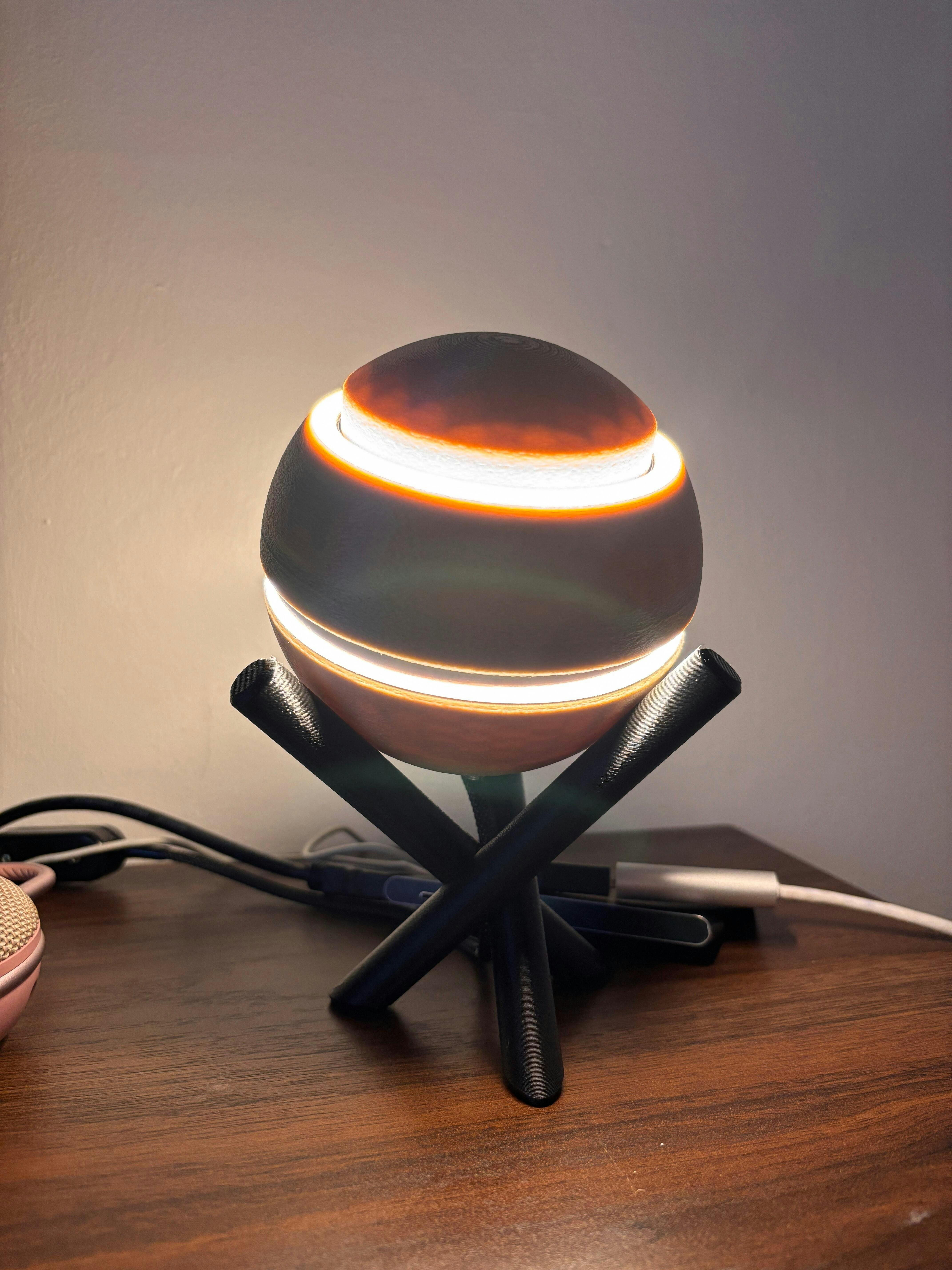 This little 3D-printed lamp is an absolute showstopper! The spherical design, paired with its glowing light rings, makes it look like a miniature planet captured on a modern stand. The craftsmanship is outstanding—the layers of the print add a subtle texture that enhances its uniqueness rather than taking away from it.